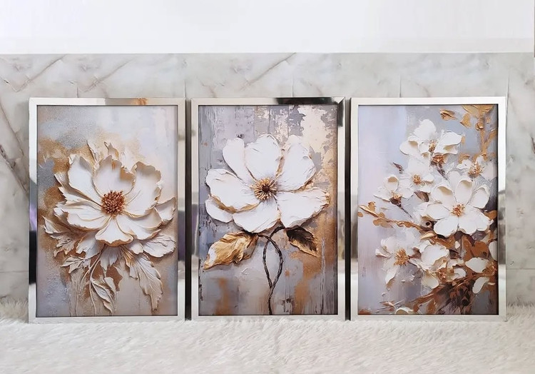 تابلو گل سه تکه تمام برجسته