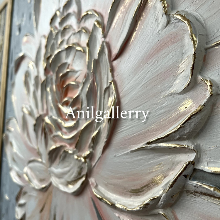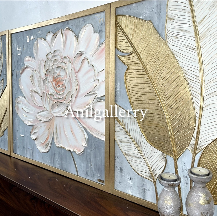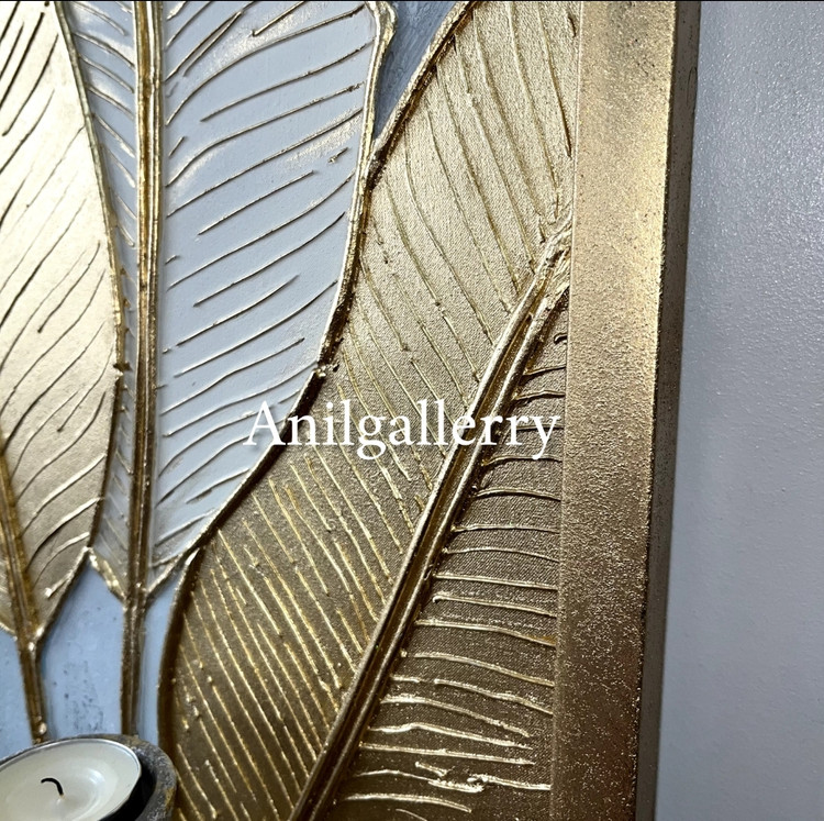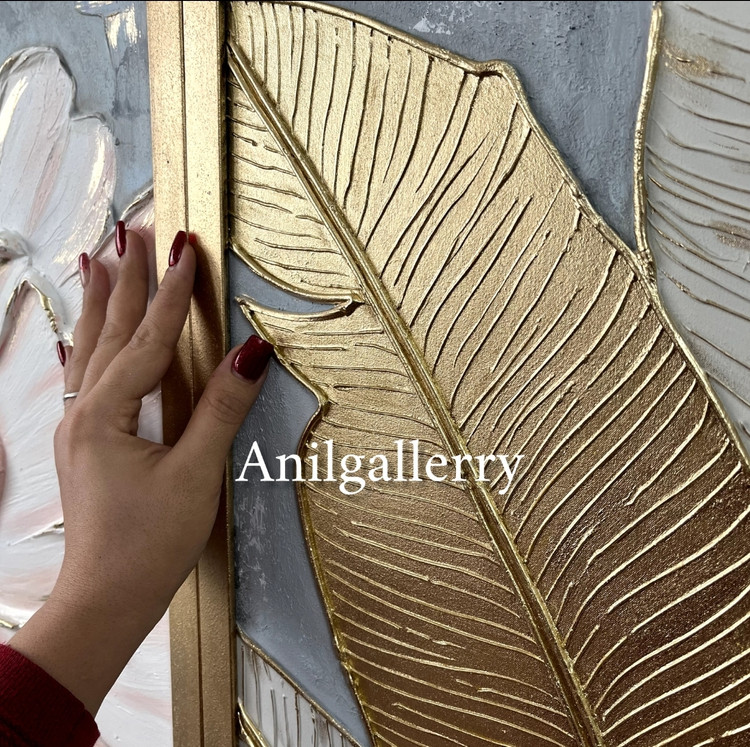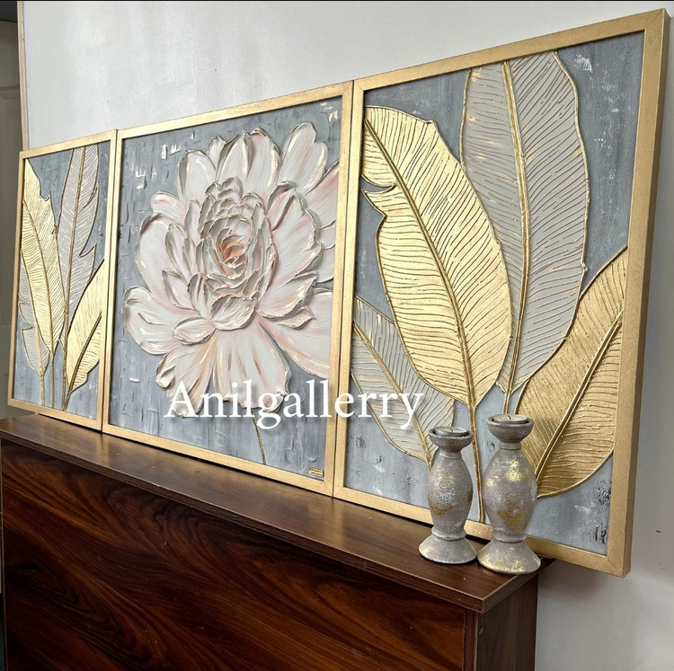 تابلو گل و برگ برجسته مزین به ورق طلا