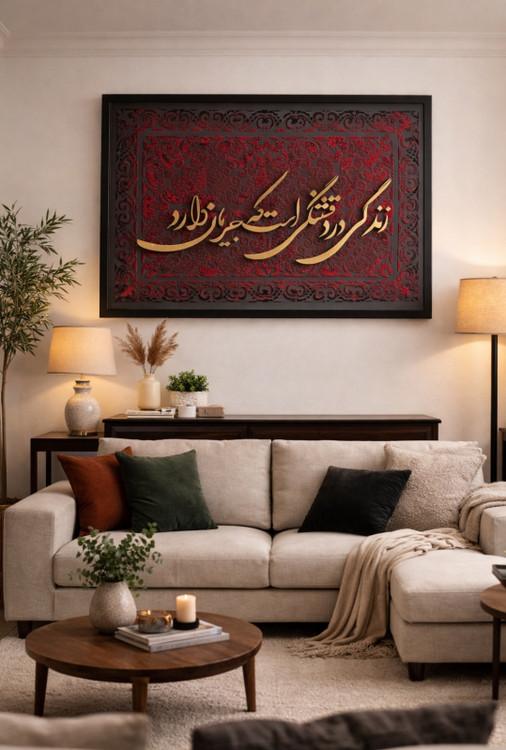 تابلو برجسته مخمل کاری شده، کار با حروف چوبی