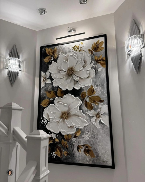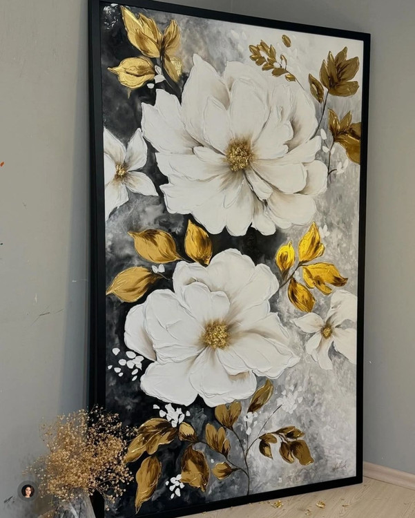 تابلو تمام برجسته گل مزین به ورق طلا